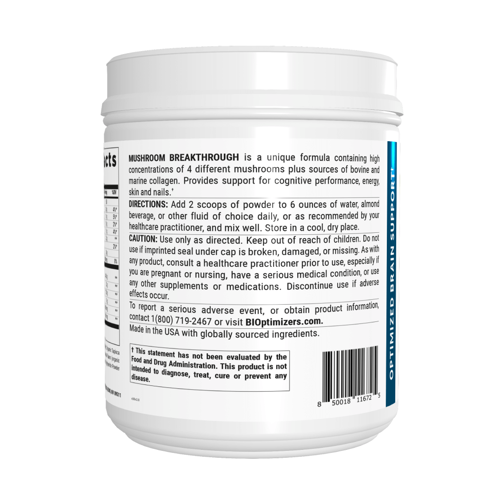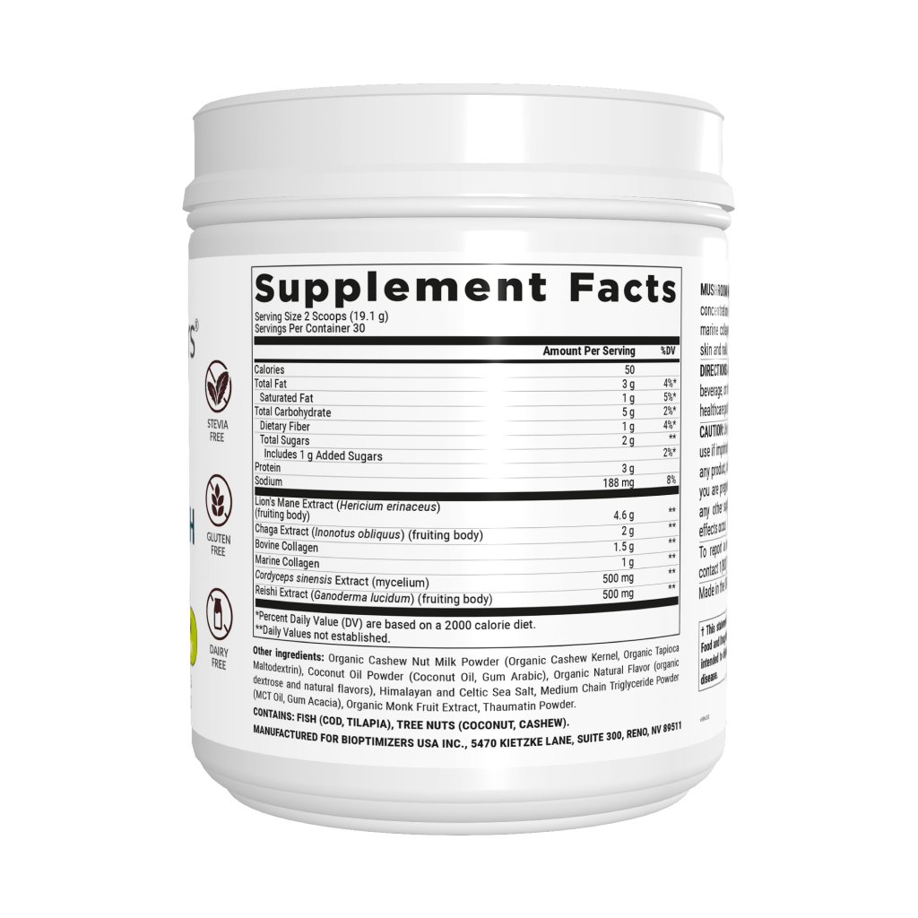 A blend of four mushrooms and collagen that gives you maximum brain power, healthier skin, hair and nails, and supports the immune system.