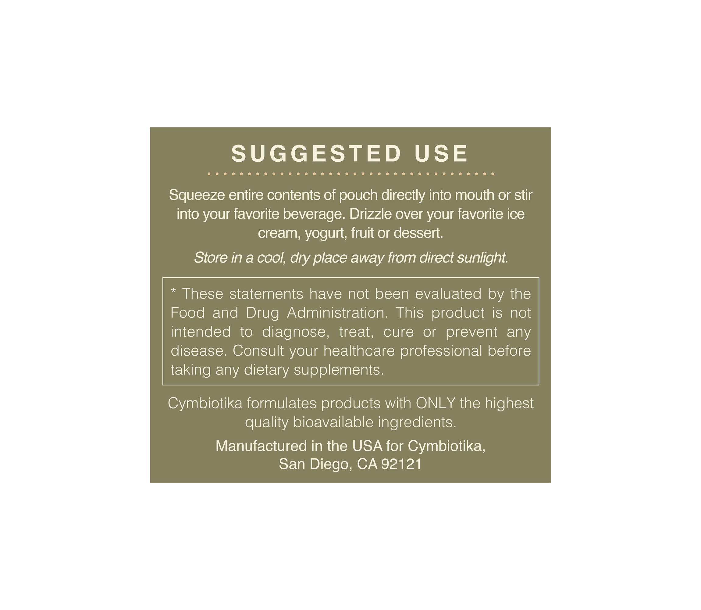 Squeeze onto a tablespoon and consume or mix into a beverage of choice.